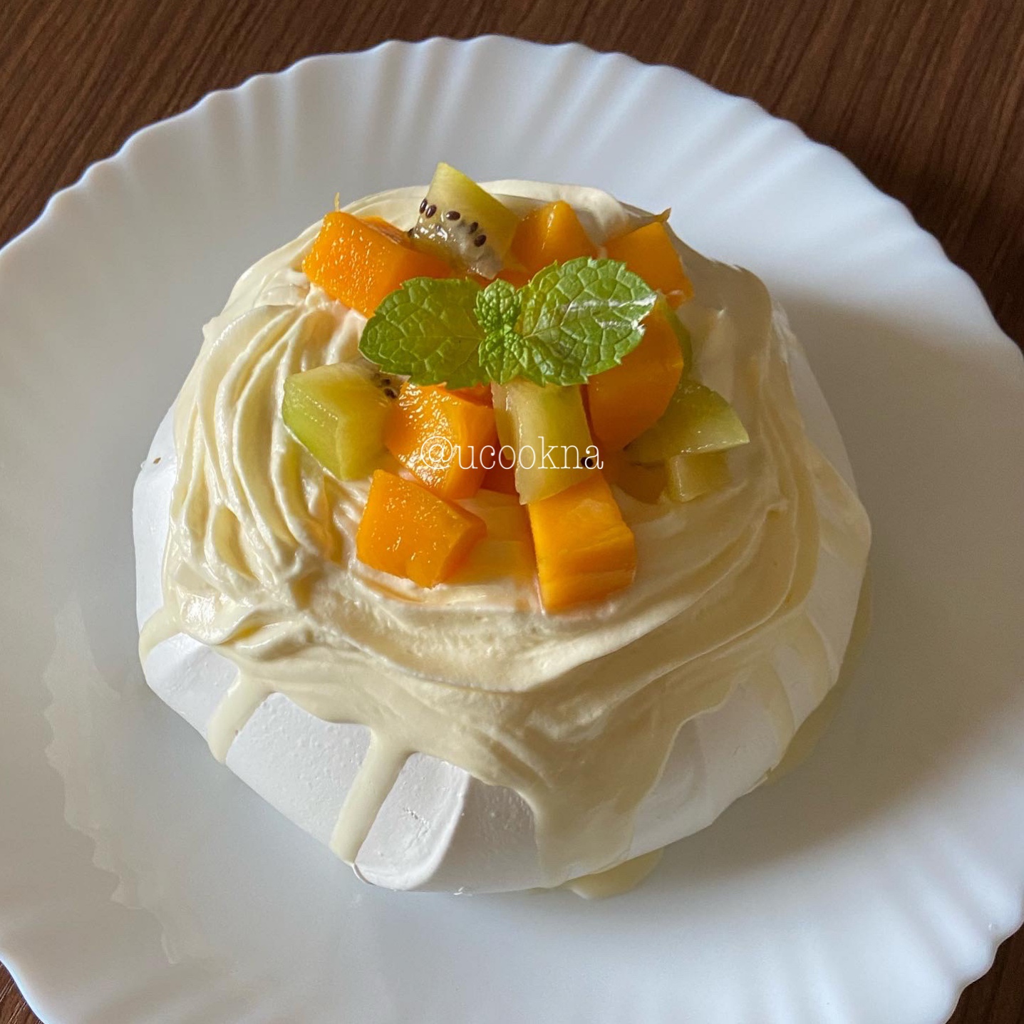 這款甜點以烘烤過的蛋白霜為基底,成份跟馬林糖其實很相似,但因為烘烤時間、溫度、蛋糕體大小等差異,口感相差很大。雪白、蓬鬆的蛋白霜蛋糕體就像是芭蕾舞者舞動的裙擺,放上打發過的鮮奶油或馬斯卡彭、頂部再鋪上水果(傳統是放草莓),就完成了!是一款很高雅的甜點。